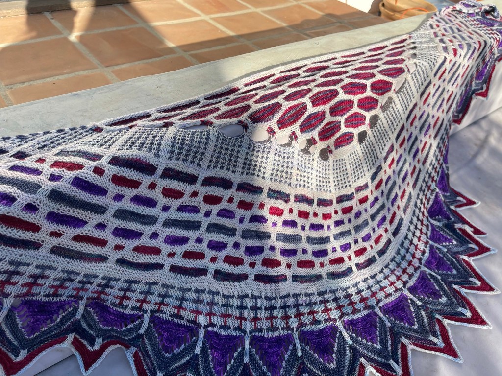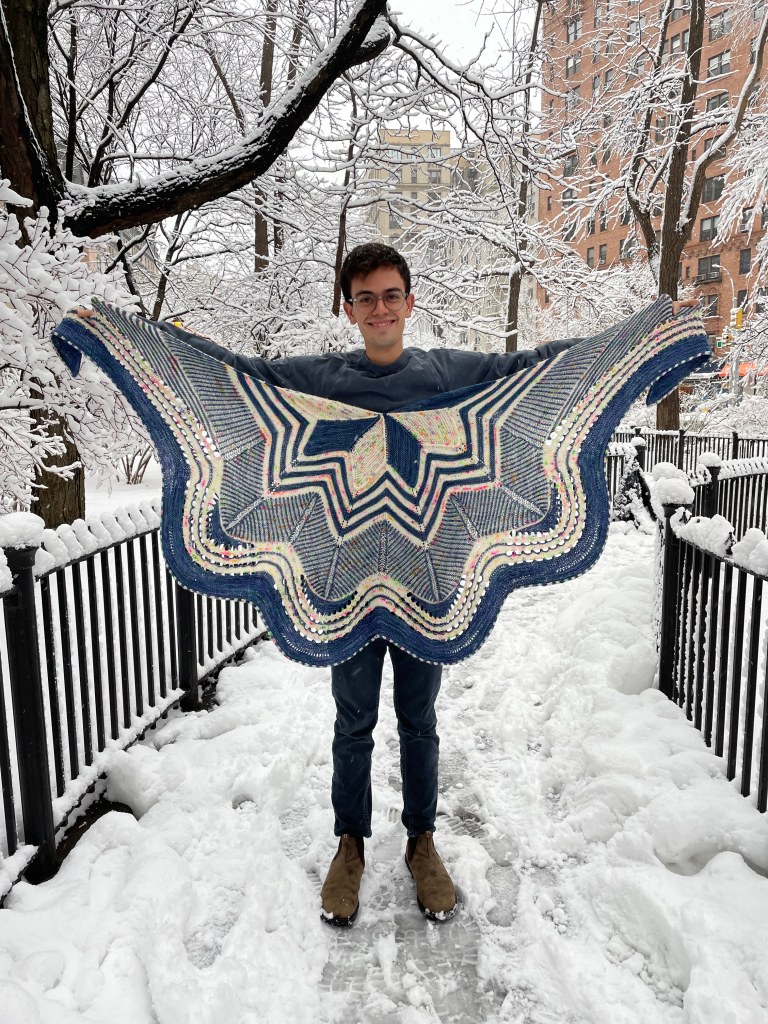 D: Right now, my favorite pattern maker is Stephen West who designed this shawl. He is based in Amsterdam and he is well known for having very intricate designs with many sections. I am always amazed when I look at his patterns. He’s genuinely a genius.