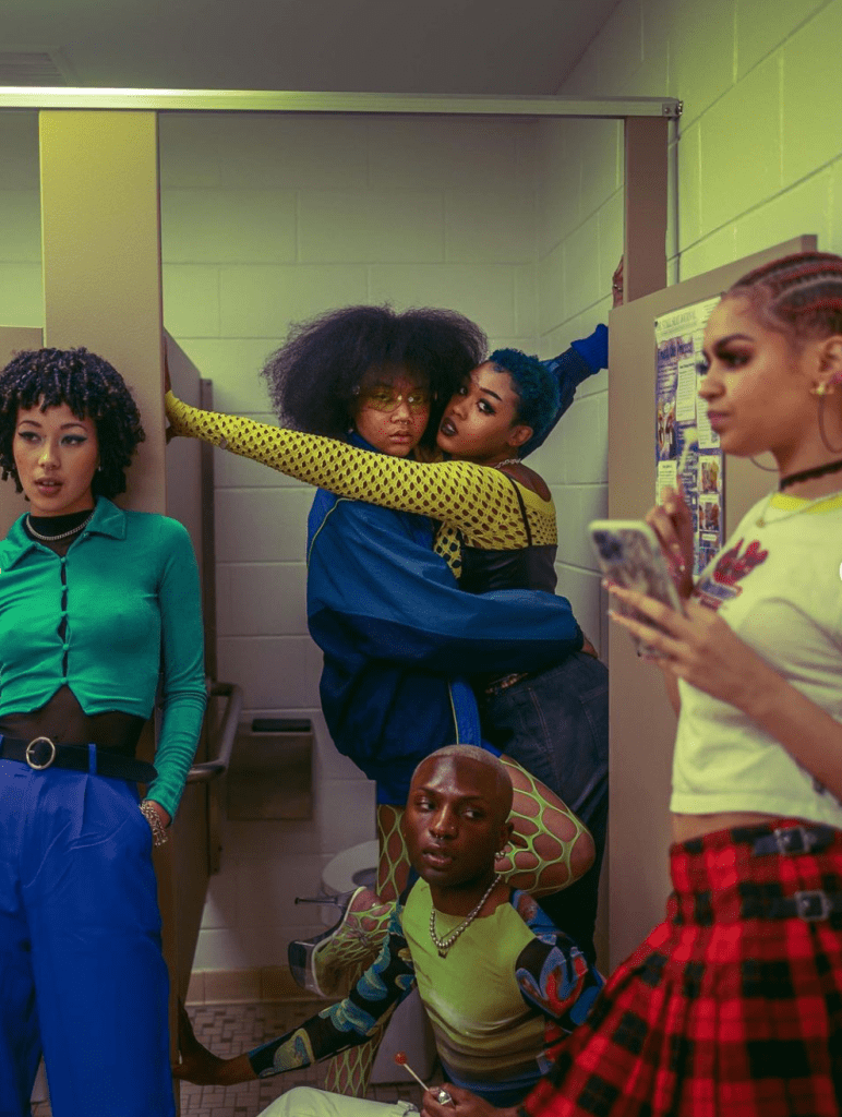 W: All credit has to go to the leadership of Statement Modelz especially the stylist, Lauryn Lynch. My roommate, Kayla Lubin, is the President, and together with the rest of the “E-Board”, they designed and organized the entire shoot. I actually just woke up the morning of the shoot, saw 20 people in my living room getting into hair and makeup and said “wait a minuttteeeee” lol. So I just grabbed my camera and got to work. They said the shoot was meant to reclaim and uplift the styles black people created in the 90s and yearly 2000s (and were heavily criticized for) that have now come back into the mainstream. We see this happen all the time. When black people do it it’s seen as distasteful and “ghetto” but once others copy our creations it’s “groundbreaking “ and “fashion forward”. Appropriation 101.